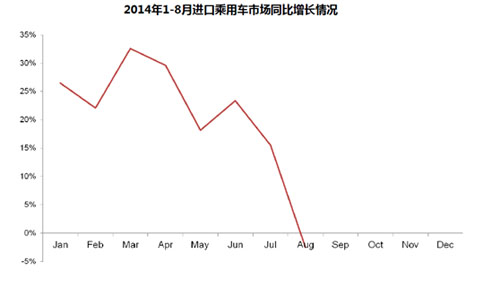 從月度進口車市場增速來看,呈現(xiàn)增速回落態(tài)勢,8月單月市場出現(xiàn)下滑。