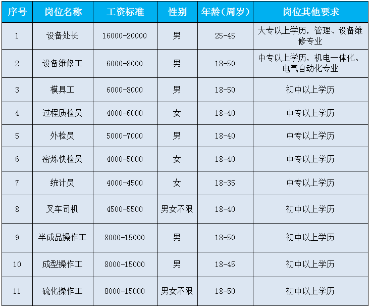 包括設(shè)備處長、外檢員、成型操作工、硫化操作工、密煉快檢員等。