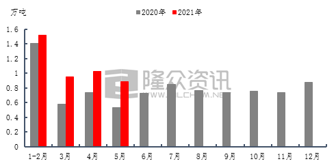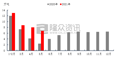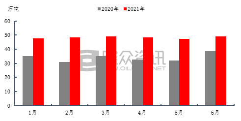 2020年與2021年上半年炭黑進(jìn)口數(shù)量對(duì)比圖