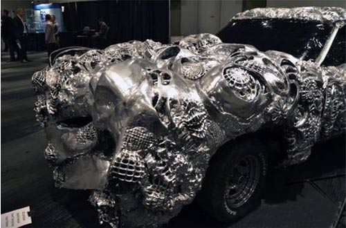 它的作者Ioan Florea生于羅馬,出于童年時(shí)期對(duì)美國(guó)車的向往,他采用一輛經(jīng)典福特車與液態(tài)金屬結(jié)合,打造出了這個(gè)堪稱是世界上最詭異的汽車。