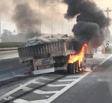 福建大貨車輪胎突然自燃