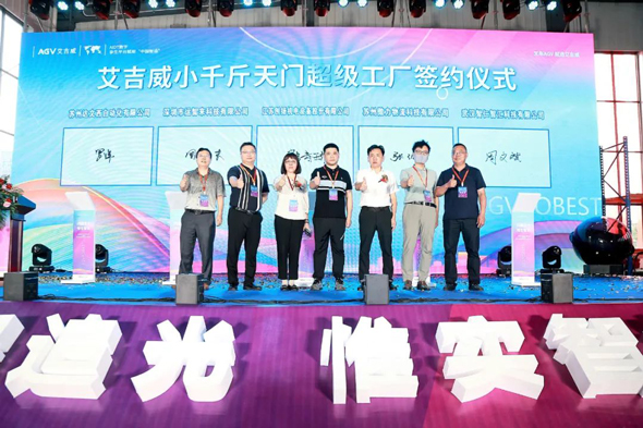 張勁松、司秀芬博士、劉勝明等點(diǎn)亮啟動(dòng)球,艾吉威小千斤超級(jí)工廠正式啟用。