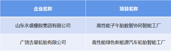 其中,永盛橡膠集團、廣饒吉星輪胎,入圍智能工廠榜單。